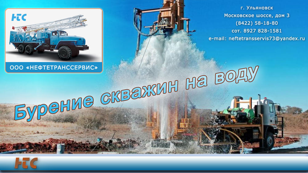 Основные виды услуг от компании ООО «Нефтетранссервис» (Ульяновск):- Бурение скважин на воду для частных лиц и предприятий;